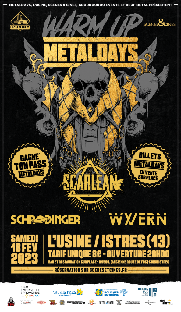 Billetterie l’Usine – Istres (13) : https://www.scenesetcines.fr/spectacles/warm-up-metaldays/