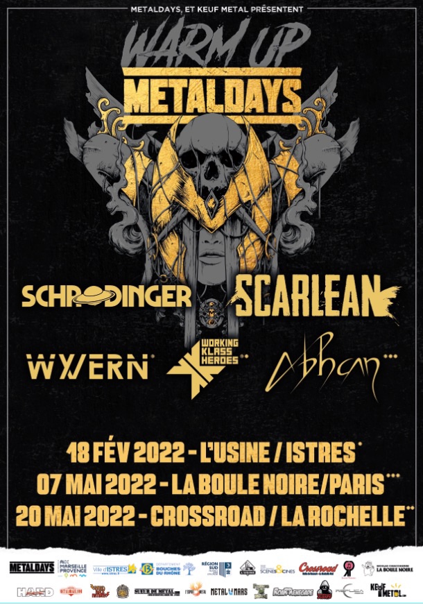 Au programme de ces Warm Up : des concerts, des pass pour le MetalDays à acheter sur place, mais aussi à gagner ! SCARLEAN, SCHRODINGER et leurs amis vous donnent rendez-vous à Istres (13), Paris (75) et La Rochelle (17) l’année prochaine pour des soirées métalliques à souhait et une fêter d’enfer !