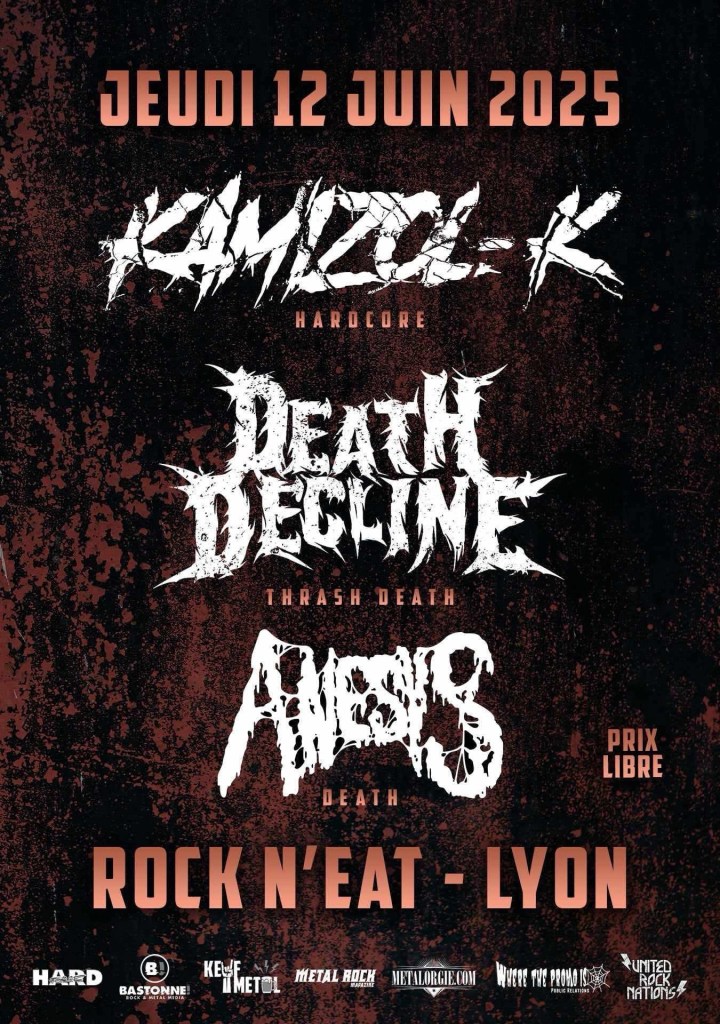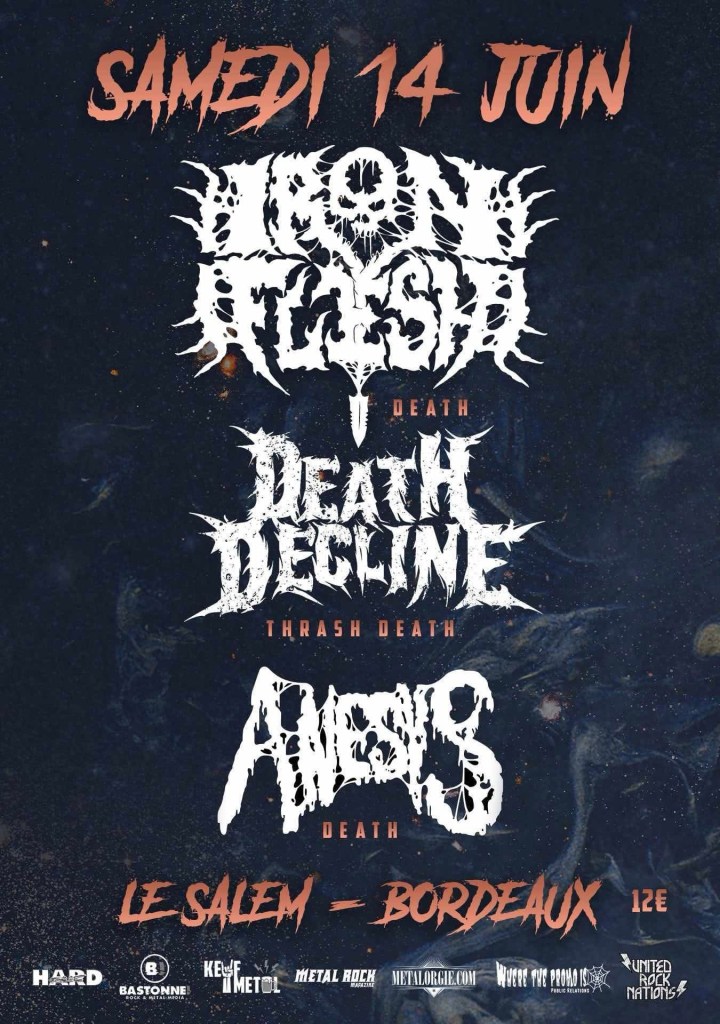 DEATH DECLINE & ANESYS seront Ă Lyon ce jeudi avec KAMIZOL-K (Rock N Eat), Ă Montpellier vendredi avec EXODUST (Secret Place) et Ă Bordeaux samedi avec IRON FLESH (Salem).