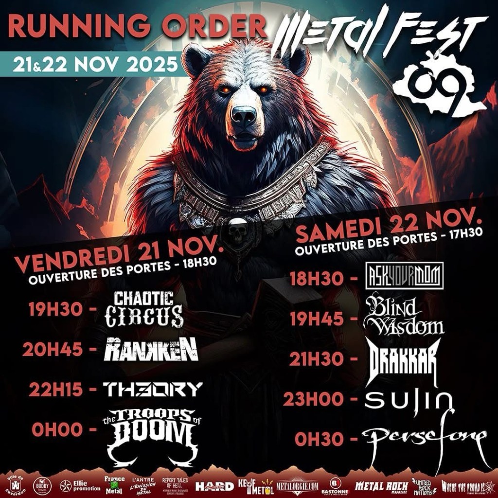 Le Metal Fest 09 dévoile son running order ! Publié parkeufmetal29 octobre 202529 octobre 2025Publié dansNon classéÉtiquettes :Festivals Billeterie : https://www.helloasso.com/associations/back-in-black/evenements/metal-fest-09-1?fbclid=IwRlRTSANvWV1leHRuA2FlbQIxMAABHvOKfnEeJCXuqM-uUHujqOFit1pylpxJcbck6R_liHadrgklS-5F_odvPkxc_aem_wMGDqX9BMw6Z1bR__nmB1A Partager :Plus Cliquer pour envoyer un lien par e-mail à un ami(ouvre dans une nouvelle fenêtre) E-mail J’aime chargement…