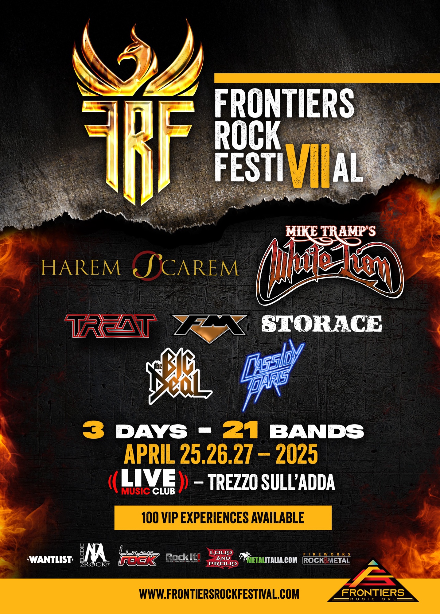 Suite à l’annonce de la semaine dernière, Frontiers Music Srl a le plaisir d’annoncer les noms de sept autres groupes confirmés qui se produiront au Frontiers Rock Festival, qui aura lieu les 25, 26 et 27 avril 2025, au Live Club de Trezzo sull’Adda (Milan). Le festival présentera un total de 21 groupes en trois joursLire la suite « FRONTIERS ROCK FESTIVAL les 25, 26 & 27 avril 2025 : 7 Nouveaux groupes à l’affiche ! »