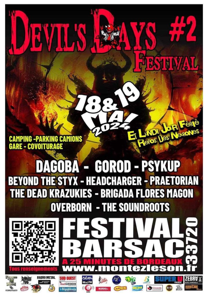 Il arrive à grands pas ce festival, et avec une affiche du tonnerre, puisque Dagoba, Psykup, Gorod, Headcharger et bien d’autres vous donnent rendez-vous les 18 et 19 Mai prochain à Barsac (33) !