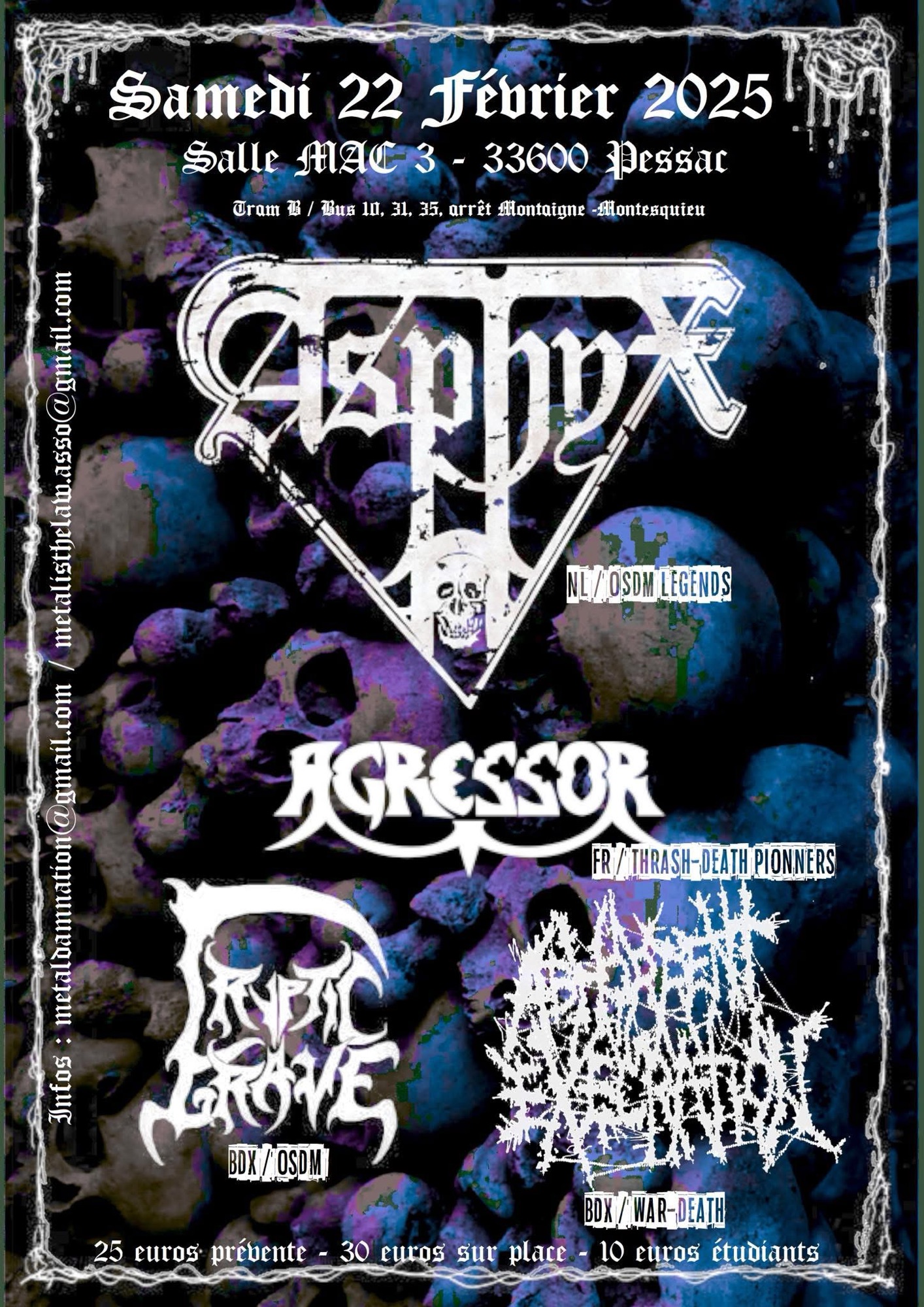 ASPHYX / AGRESSOR / CRYPTIC GRAVE / ABHORRENT EXECRATION le 22 février à Pessac (33) !