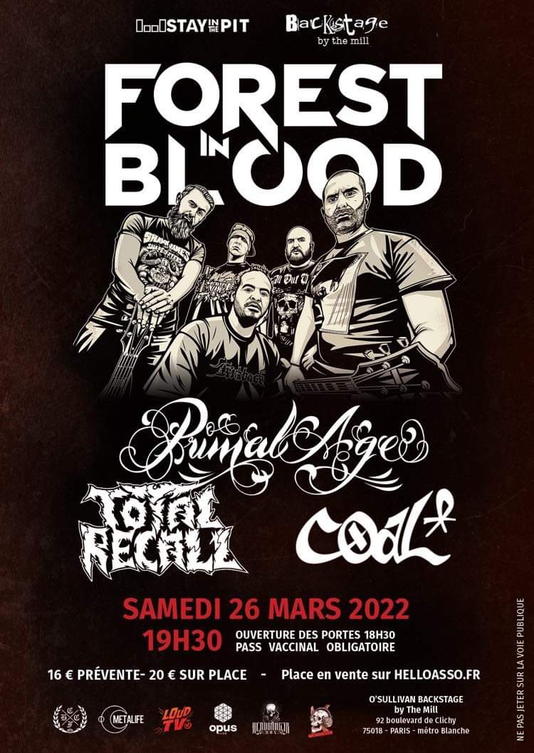 Soirée Hardcore à Paris avec FOREST IN BLOOD, PRIMAL AGE, TOTAL RECALL & COAL !