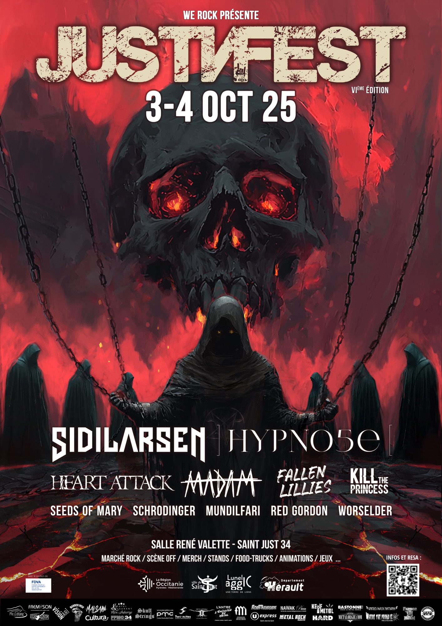 La petite bourgade de Saint-Just située dans l’Hérault (34) accueillera la 6e édition du Festival Just’N’Fest les 3 & 4 octobre prochains avec une affiche à faire rugir de plaisir ! Vendredi 3 Octobre 2025 dès 18h00 : MADAM / FALLEN LILLIES / KILL THE PRINCESS / MUNDILFARI Samedi 4 Octobre 2025 dès 11h00 SIDILARSEN / HYPNO5E / HEARTLire la suite « Just’N’Fest 2025 : l’affiche dévoilée ! »